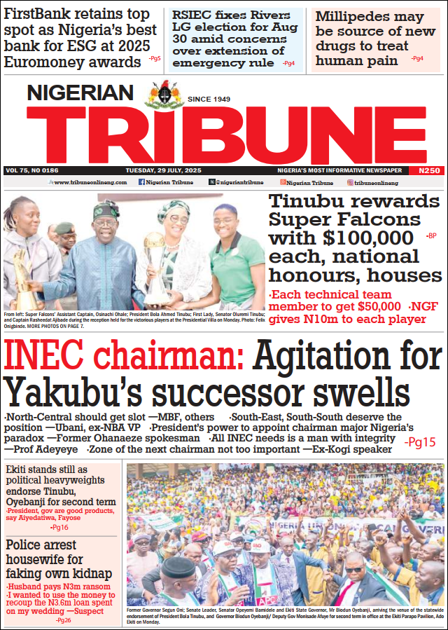 - Tinubu confers nat'l honours, splashes N4.5bn on victorious S’Falcons, officials