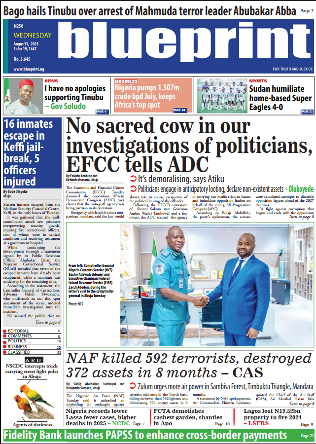 - No sacred cow in our investigations of politicians, EFCC tells ADC