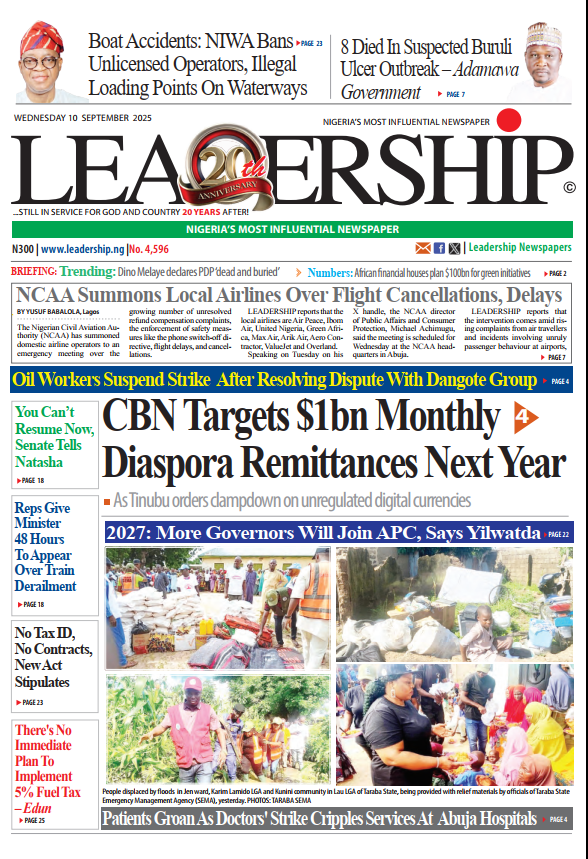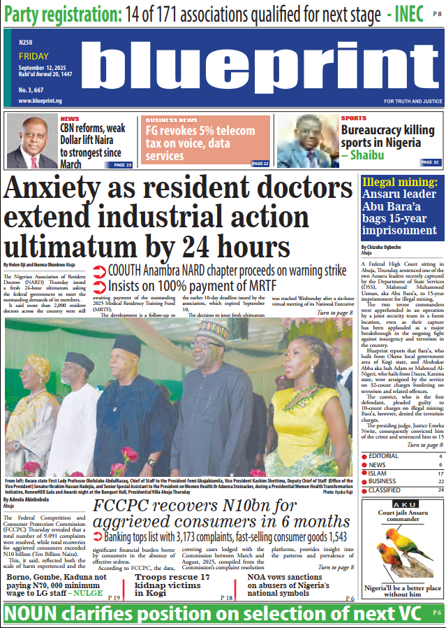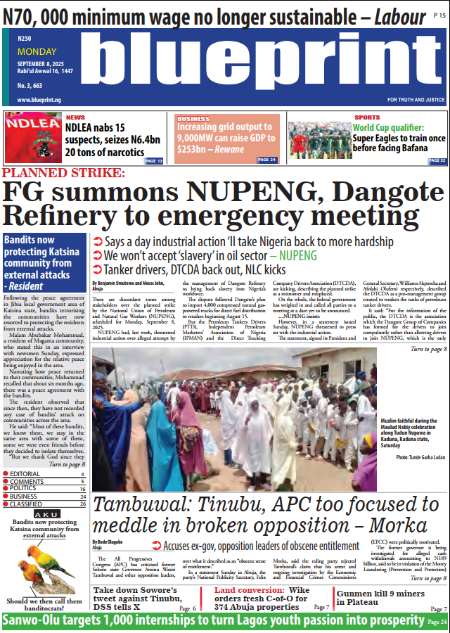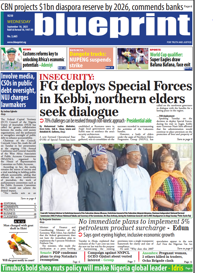 - CBN projects $1bn diaspora reserve by 2026, commends banks WEDNESDay September 10, 2025 Rabi’ul Awwal 18, 1447 AH No. 3,665 www.blueprint.ng N250