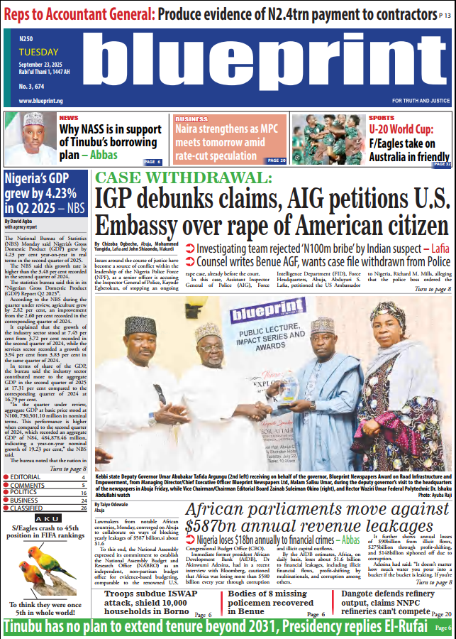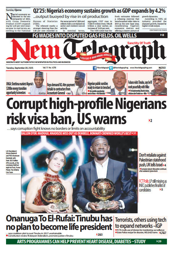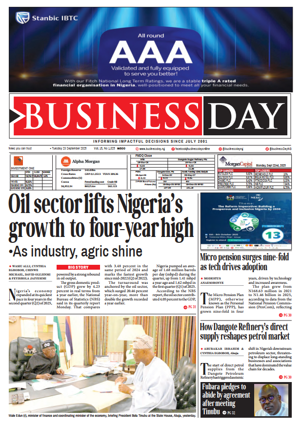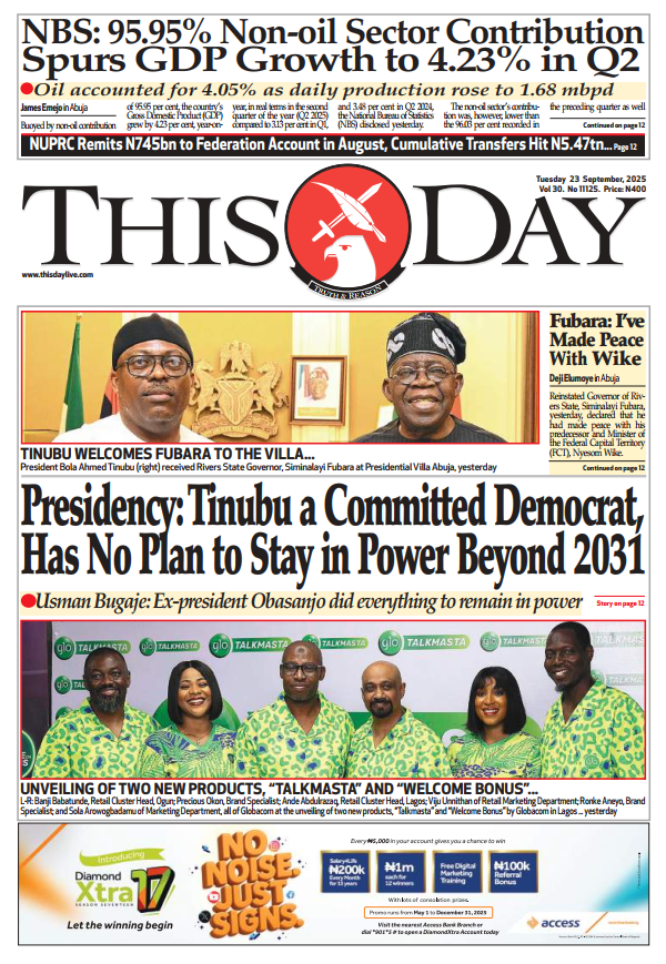 - Nigeria’s GDP grew by 4.23% in Q2 2025 – NBS