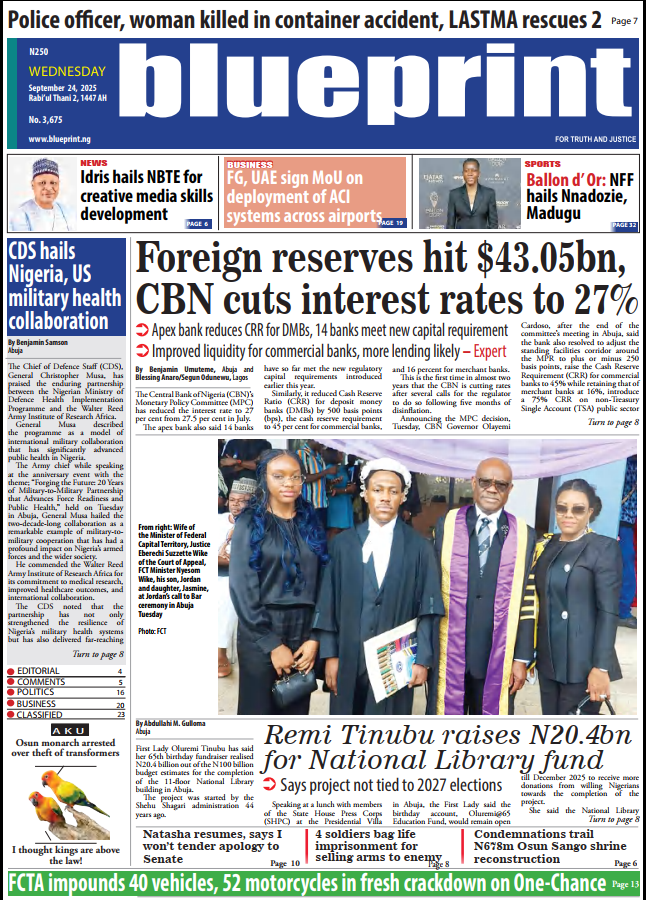 - Foreign reserves hit $43.05bn, CBN cuts interest rates to 27%