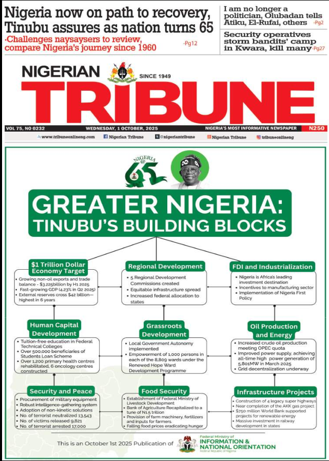 - Nigeria at 65: The worst over, Tinubu declares