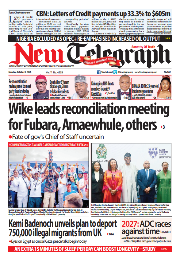 - CBN: Letters of Credit payments up 33.3% to $605m