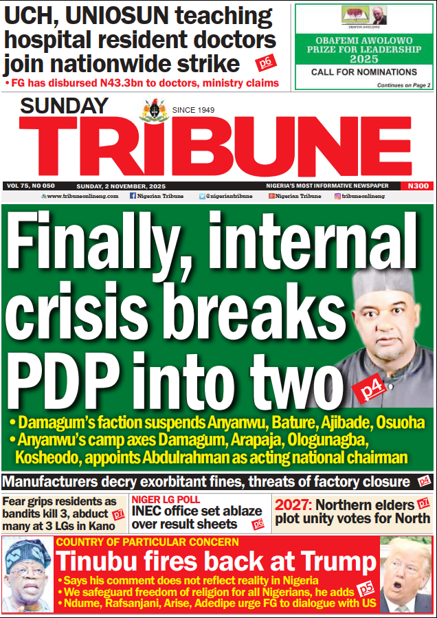 - PDP splits as NWC factions suspend each other