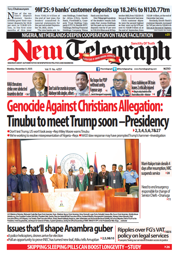 - 9M’25: 9 banks’ customer deposits up 18.24% to N120.77trn