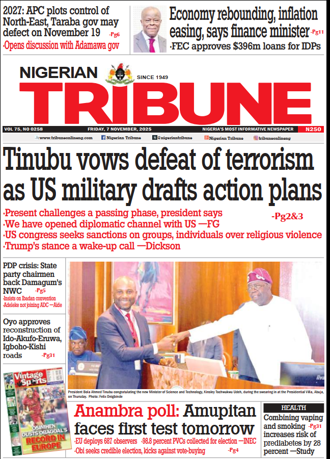 - Tinubu vows to defeat terrorism as U.S. plans military options