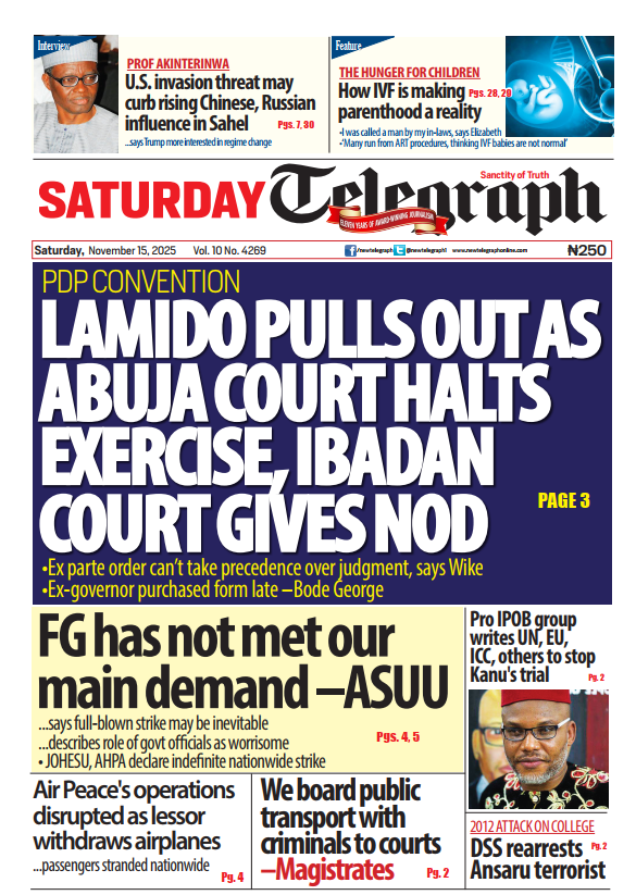 - LAMIDO PULLS OUT AS ABUJA COURT HALTS EXERCISE, IBADAN COURT GIVES NOD