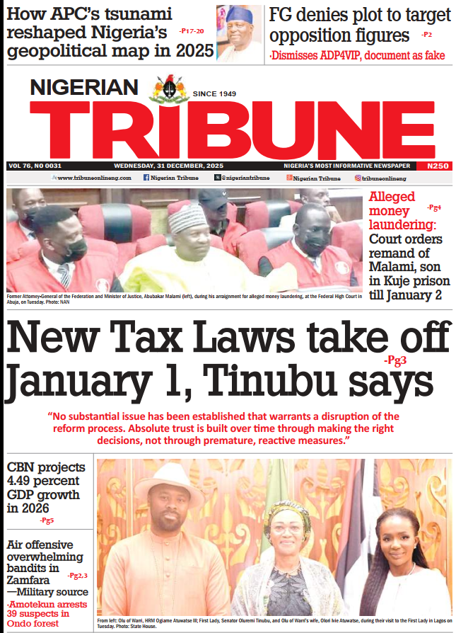 - New Tax Laws take off January 1, Tinubu says