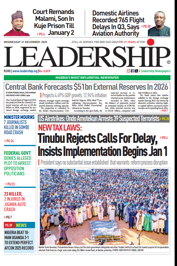 - Tinubu: New Tax Laws Take Off January 1, CBN Projects $51.04bn External Reserves